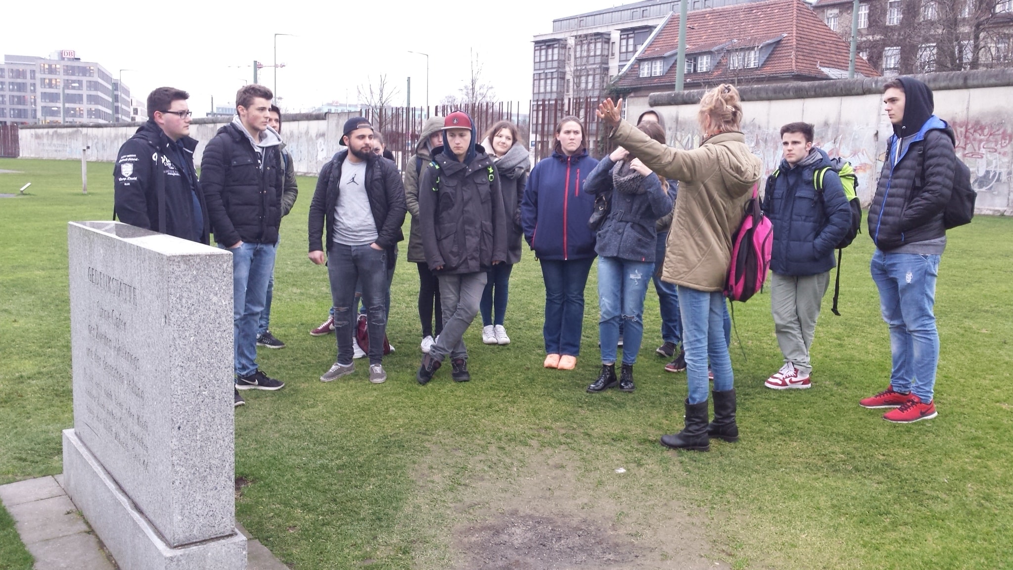 „Ihr tragt keine Schuld für das, was passiert ist, aber ihr macht euch schuldig, wenn es euch nicht interessiert.“ Mit diesem Zitat der deutsch-jüdischen Überlebenden des KZ Ausschwitz-Birkenau Esther Bejanero begann am 27.01., dem Tag des Gedenkens an die Opfer des Holocaust, eine Aktion der SV des Gymnasiums Herkenrath. Nachdem ein 20 Meter langes Transparent mit dem Zitat in leuchtend roter Schrift auf dem Schulhof ausgerollt wurde, hielten einige Schülerinnen und Schüler dieses in die Höhe, um ein Zeichen gegen Antisemitismus und für das Gedenken an die Opfer des Nationalsozialismus zu setzen.