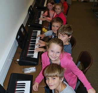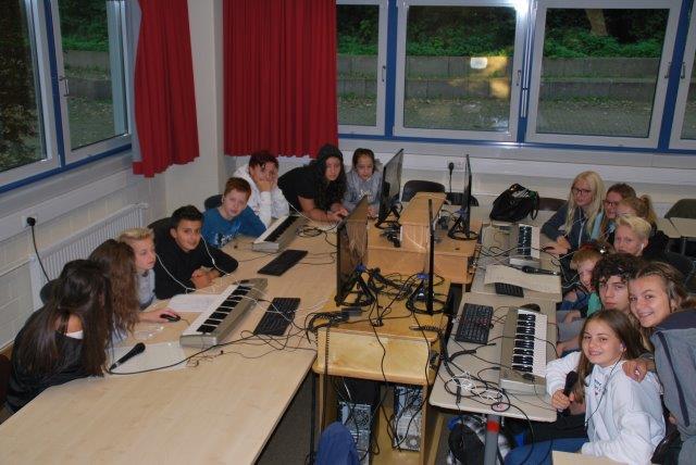 In besonderer Weise, weil mit der unmittelbarsten Erfahrung verbunden, hat dabei das praktische Musizieren an unserer Schule einen Stellenwert: Im separaten Keyboardstudio ist das genauso möglich, wie mit dem in jedem Raum verfügbaren Band-Equipment oder in unseren Schulchören bzw. der Big Band.